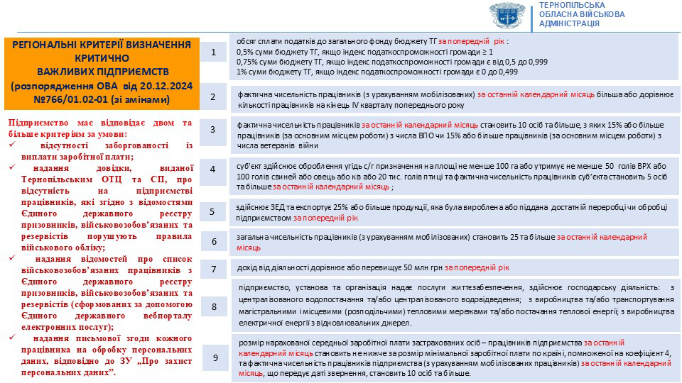 КРОК 3. Оберіть не менше двох регіональних критеріїв, затверджених розпорядженням Тернопільської обласної військової адміністрації від 20.12.2024 № 766/01.02-01 (зі змінами):