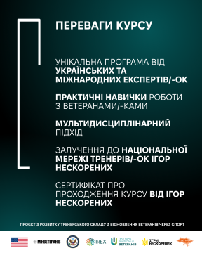 Учасники матимуть можливість здобути сучасні знання та практичні навички роботи з ветеранами. Із захисниками, які отримали поранення, травми або захворювання внаслідок російсько-української війни.