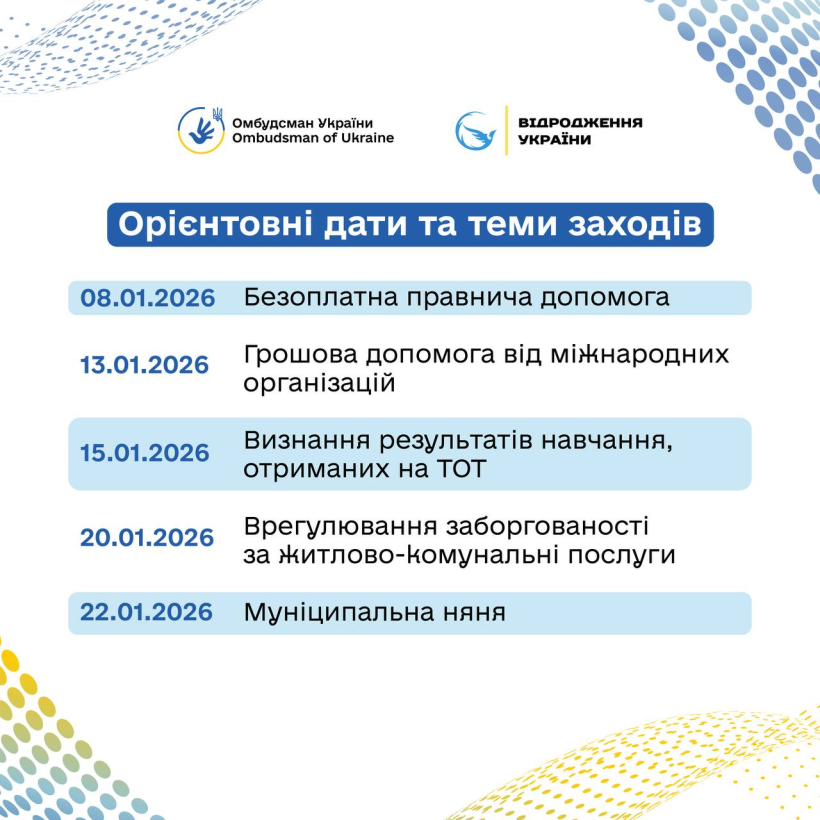 Щодо орієнтовних дат та тем заходів — далі в інфографіці.