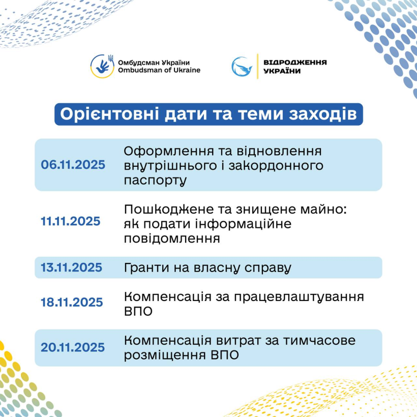 З 21 жовтня розпочинається серія правопросвітницьких онлайн заходів для підвищення обізнаності ВПО. Про це повідомив Омбудсман України Дмитро Лубінець.